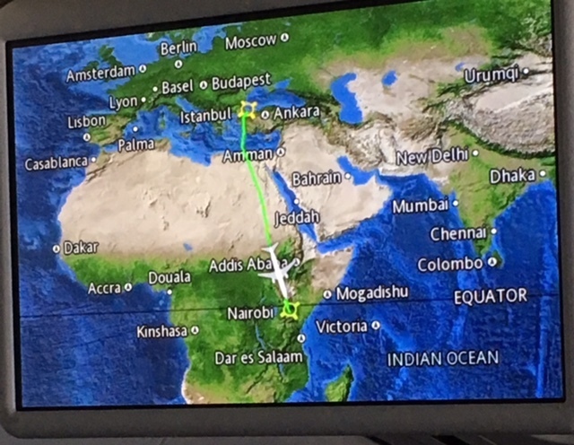 イスタンブール発、ナイロビ行きの機内(撮影筆者)