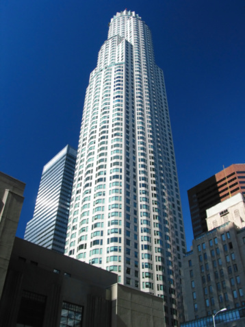 西海岸で最も背の高いビルは、ロサンゼルスダウンタウンにあるUSバンクタワー。1989年に完成し、72階建てで高さは310メートル。86年の火災で焼失したロサンゼルス図書館再建のため、「地上権」をおよそ10億ドルで売却することで建設が着工された。