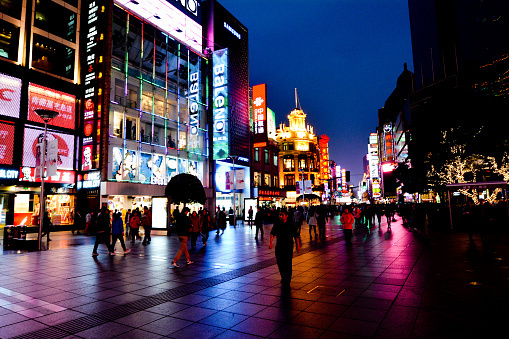 人で賑わう夜の上海の街並み(iStock)