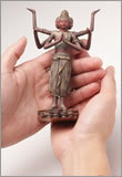前述の通り、フィギュア等の模型製作で知られる海洋堂は、展覧会公式フィギュアとして阿修羅像を製作、会場限定発売をおこなった。高さ14センチとはいえ、6本の細い腕にはきちんと腕釧〔わんせん〕と呼ばれるブレスレットが嵌められ、胸飾や左肩から掛けた条帛の皴までもが丁寧に再現されている。もちろん、顔の表情も、本物をよく模している。これで2980円はお値打ちである。