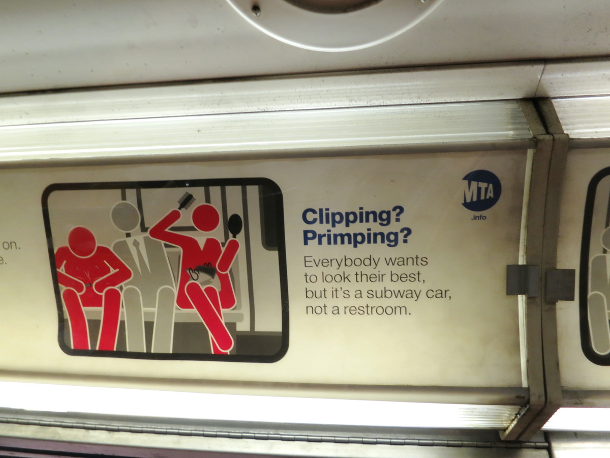 Clipping? Primping? Everyone wants to look their best, but it is a subway car, not a restroom.