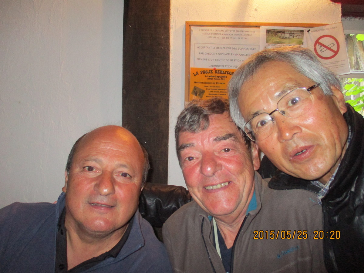 5月21日 24km歩いて途中で道連れになったフランス人中年夫婦とカステ・アルイ(Astet-Arrouy)の宿に到着。彼らの他にも数人フランス人が加わり賑やかに会食。