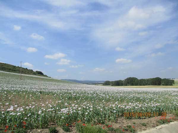 日が昇ってきた。美しい高原の田園が広がっている。なだらかな丘を登りきると素晴らしい眺望だ。10時頃に小さな教会に通りかかった。庭にテーブルとベンチがあったので早めのランチにした。アグネはバゲットと水とジャムだけだ。私がサラミとチーズを勧めると「生き物が可哀想だからお肉や魚は食べないの。チーズだけ頂きます」とのこと。