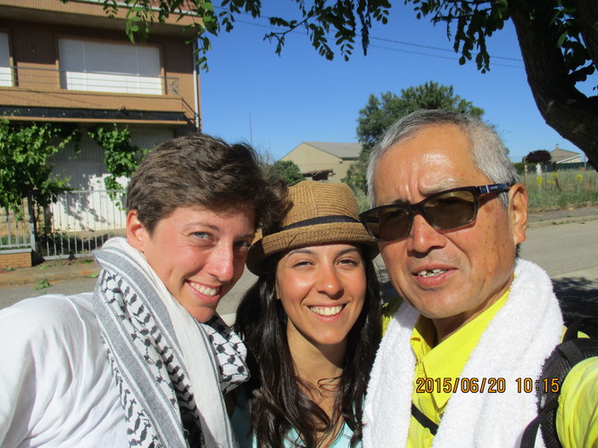 6月20日 朝9時頃、この地方の中心都市レオンを目指して歩いていたら、2日前に慈善宿で知り合ったイタリア人のジュリアとアリーチェに偶然出会った。