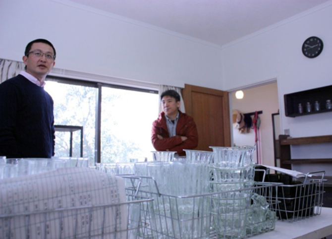 ガラス作家の左藤玲朗さん(右)、農家の久松達央さん(左)