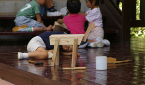 他のグループの子たちはくぎを打ち始める中、言い合いが続きます。するとかなづちが持てなかった翔太くん、急に立ち上がりどこかへ…。残った3人が打ち始めます。