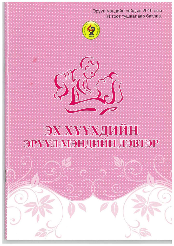 モンゴルで使用されている母子健康手帳。ピンクブックと呼ばれている。