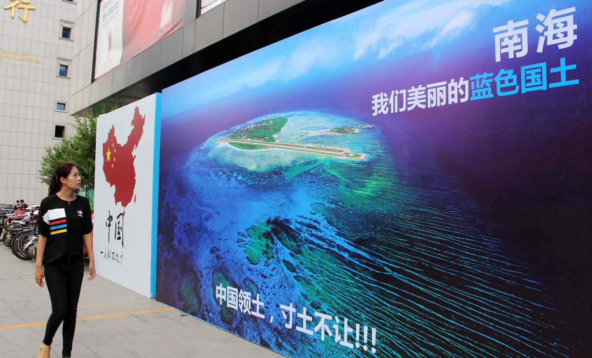 南シナ海の島は自らの領土だとPRする中国のポスター(Getty IMages)