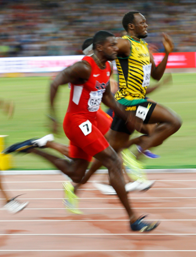 ボルトとガトリン(写真:ロイター/アフロ)