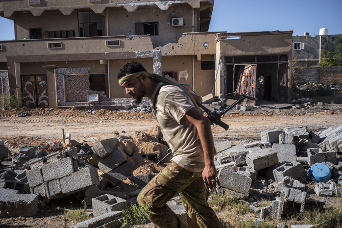 ISのスナイパーの射程圏内に進んでいくリビア軍兵士(The Washington Post/GettyImages)