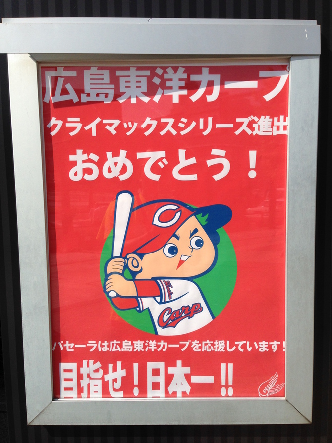 このころから地元マスコミにも様々な優勝関連のニュースが流れるようになった。地元有力紙の中国新聞は、広島駅からマツダスタジアムへ通じる道(通称「カープロード」)が拡張されるという情報をはじめ、25店舗以上に及ぶ優勝セールの期間と内容を一覧表にして掲載。広島市だけでなく、芸北と呼ばれる山間部の商店街のセール、三原市で行われる地元画家のカープの絵の個展なども地域面で紹介するという念の入れようである。