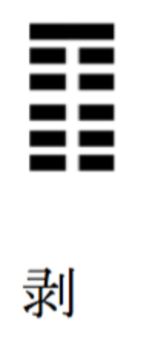 さて、易占いでは、八卦を2つ重ねて作られた64の卦を用いて占います。たとえば、剥は坤と艮の卦からできています。