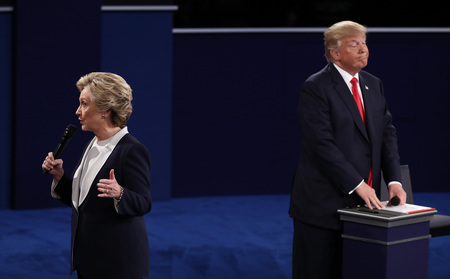 第2回目のテレビ討論会では、特にトランプ候補の女性蔑視の発言に対する対応に注目が集まりました。討論会で同候補は、まず硬い表情で自身の発言は更衣室で行われる程度のものだと述べ、ダメージを小さくする戦略に出たのです。次に、過激派組織「イスラム国」に焦点を当てて、争点をすり替えました。それに気づいた司会者が、再度女性を見下す発言について質問をすると、今度はビル・クリントン元大統領の不倫問題を取りあげ、「女性を虐待した」と主張したのです。