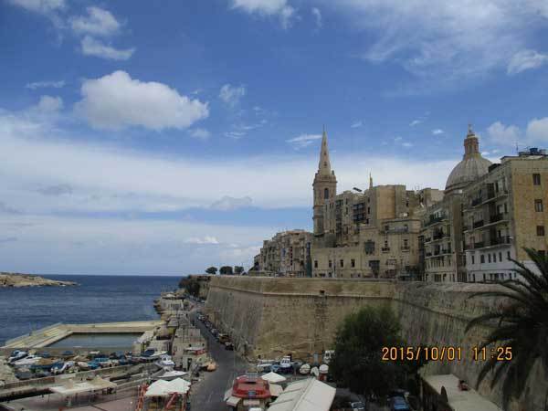 10月1日 午前中はバレッタ市内を見物。荷物を引いて石畳の旧坂を上り下りしながらエルム要塞まで歩く。高級リゾートのスリーマ(Sliema)の海辺に午後2時頃到着。海辺のプロムナードの街路灯の真下にテントを設営。
