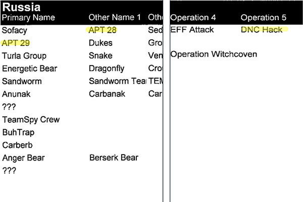 一般には聞き慣れないが、ここで記されている〝DNC〟とは、米民主党全国委員会の略称。つまり、〝FANCY BEAR〟とも称されるロシアのハッカー集団が米民主党全国委員会に対しハッキングを行ったと記録したものなのである。