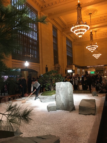 さて、レストランやショップの利用客も含めると日々75万人もの出入りがあると言われるこのグランドセントラル駅に、突如日本の石庭が出現した。