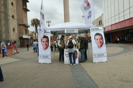 街をぶらぶら散策していたら街角のテントに人が集まっていた。聞くと選挙中で革新系候補者のキャンペーン中とのこと。「日本人だ」(Soy japoness)なんて言っても運動員の若者たちは聞く耳を持たず「署名して応援してくれ」と頼むので漢字で署名したら大いに喜んでくれた。それからテキーラを買って野菜とビーフを煮込んだメキシコ料理を食した。