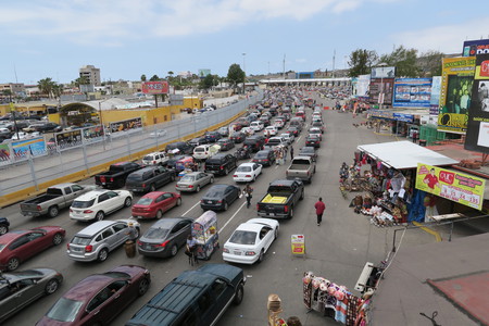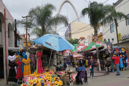 エルパソでの経験からメキシコから米国への入国審査は時間がかかることは承知していたので観光は早めに切り上げた。陸橋を渡り米国側入国管理事務所まで続いている行列に並ぶ。数百メートルの道は日除け屋根が設置されている。2列に並んでおり左側は米国市民、米国労働許可証所持者、身体障害者(handicapped person)と表示されている。健常者で米国以外のパスポート保持者は“それ以外”なので右側にならぶ。大勢の一般メキシコ人に混じって30分くらい並んでいたが一向に前に進まない。