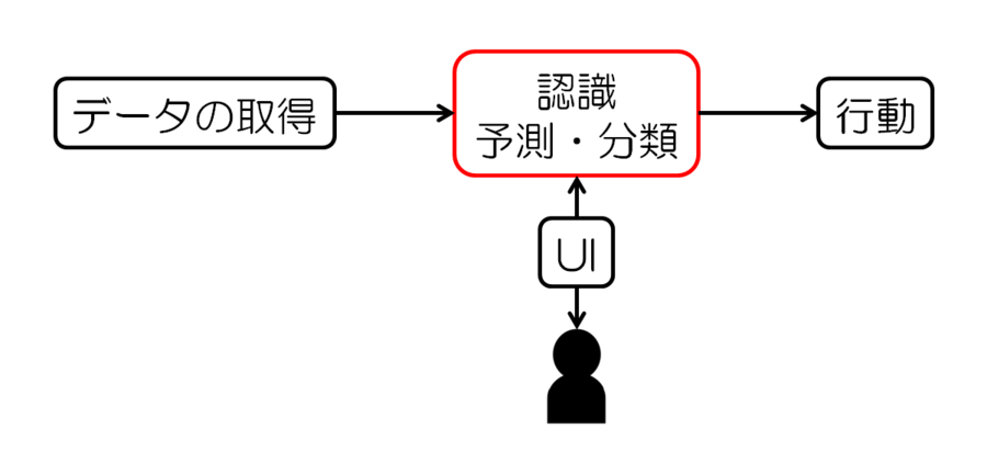 いま注目を集めているAIは、データを認識して予測や分類を行うソフトウェアで、次のようなモデルで利用されています。