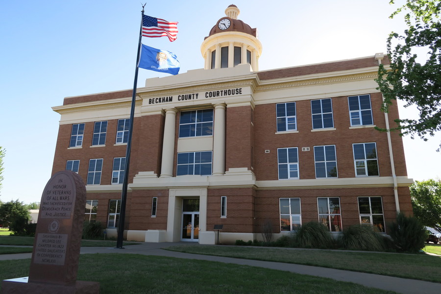 4月18日(月)。オクラホマ州西端に位置しテキサス州に隣接しているベッカム郡(Beckham County)は人口2万人余り。中心の町は落ち着いた雰囲気のElk Cityである。赤煉瓦と石材で作られた美しい建物が地方裁判所(District Court)だ。中に入ると警備員がパンフレットをくれた。築後100年近い歴史建造物のようだ。