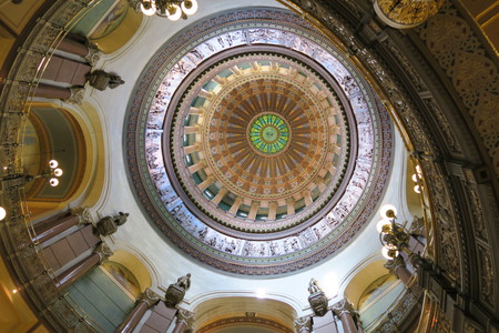 石材やシャンデリアは欧州各国から輸入、絢爛豪華なイリノイ州議事堂
