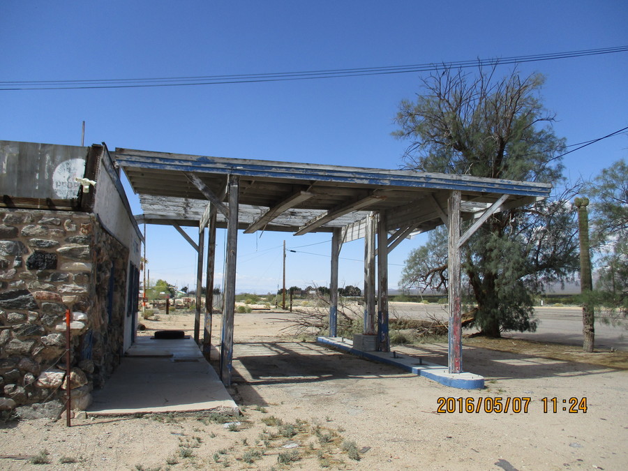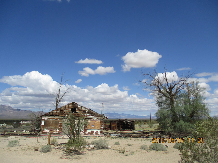 廃墟となった郵便局、ガソリンスタンド、雑貨屋、モーテルなどが旧道沿いにまばらに残っている。速度を落として観察しながら走っていると煙突から煙が出ている建物があり、さらにポンコツのキャンピングカーにも人が生活しているようだ。