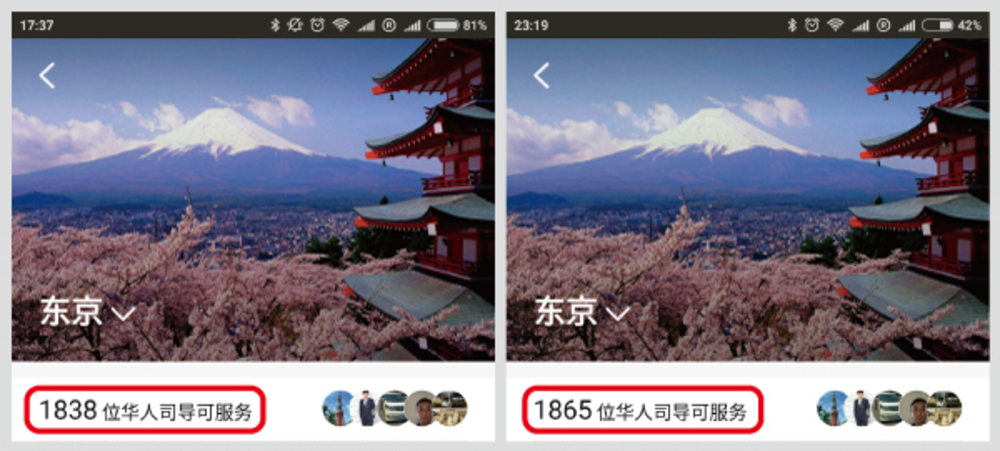 選んだのは大手として知られる「皇包車」。中国メディアの報道によると、今年1月時点での同アプリの利用者数はのべ200万人を突破。10万人のドライバーが登録しており、世界80カ国1500以上の都市で展開しているという。アプリでは各都市の登録ドライバー数が確認できる。8月23日時点で東京の登録者数は1838人に達していた。8月29日にもう一度確認すると登録者数は1865人に。1週間足らずで27人ものドライバーが新たに加盟した計算だ。