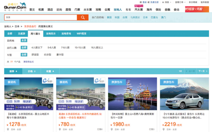 法的には明らかに問題を抱えている境外包車だが、中国企業にとってそんなことはお構いなし。中国旅行サイト最大手の「携程旅行網(シートリップ)」や個人旅行オーダーメイドで人気の「途牛旅遊網」、同じく個人旅行に強くシートリップに買収された「去哪児網」などの旅行サイトからも予約できるほか、街中でも広告を見かけるなど、アングラなイメージは一切ない。