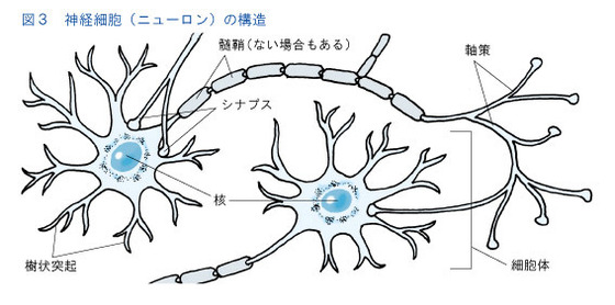 脳は、新しいことを学習すると、神経細胞からシナプスがどんどん枝分かれして別の神経細胞につながり、新しい回路を作ります。同時に新しく神経細胞が作られ、働くようになります(図3)。