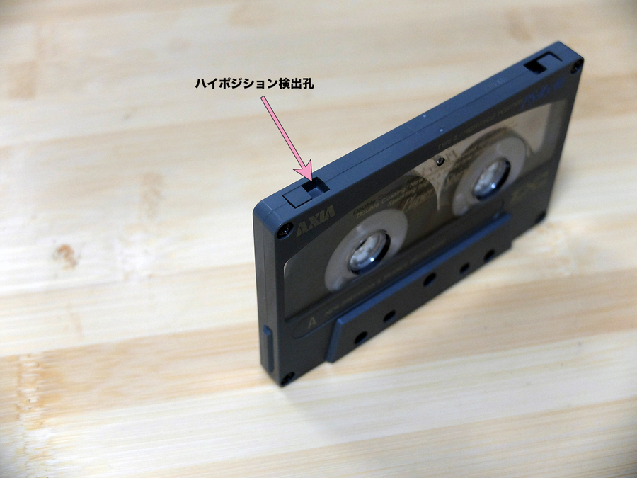そう、このポジションはカセットの歴史でもあるのです。できた時のカセットはポジションなどありません。この時代は、実用として「カセット」。よりよい音が必要なら「オープンリール」でした。しかし技術は進化します。次に新しい磁性体ができた時、今までより全然イイ音です。しかし出力が違い過ぎて、今までのシステムだと「書き込めません」。ヘッドの磁場が、磁性体の中の磁性を動かすことができなかったからです。そのために作ったのが「ポジション」。カセットの検出孔で、どのポジションのカセットか感知します。