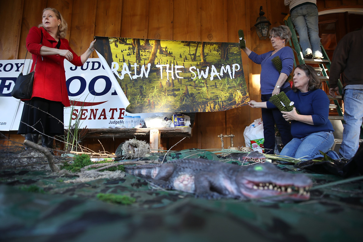 もともと、20世紀初頭、アメリカ各地でマラリアが蔓延した際に、地方ボスたちが元凶である蚊を絶滅させるのに沼地のどぶさらいを住民に徹底させるため使った言葉だったが、その後、政治家たちが聴衆受けするさまざまな公約を実現しようとする際に、その前に立ちはだかる野党や組織を攻撃するときなどにも好んで引用してきた。