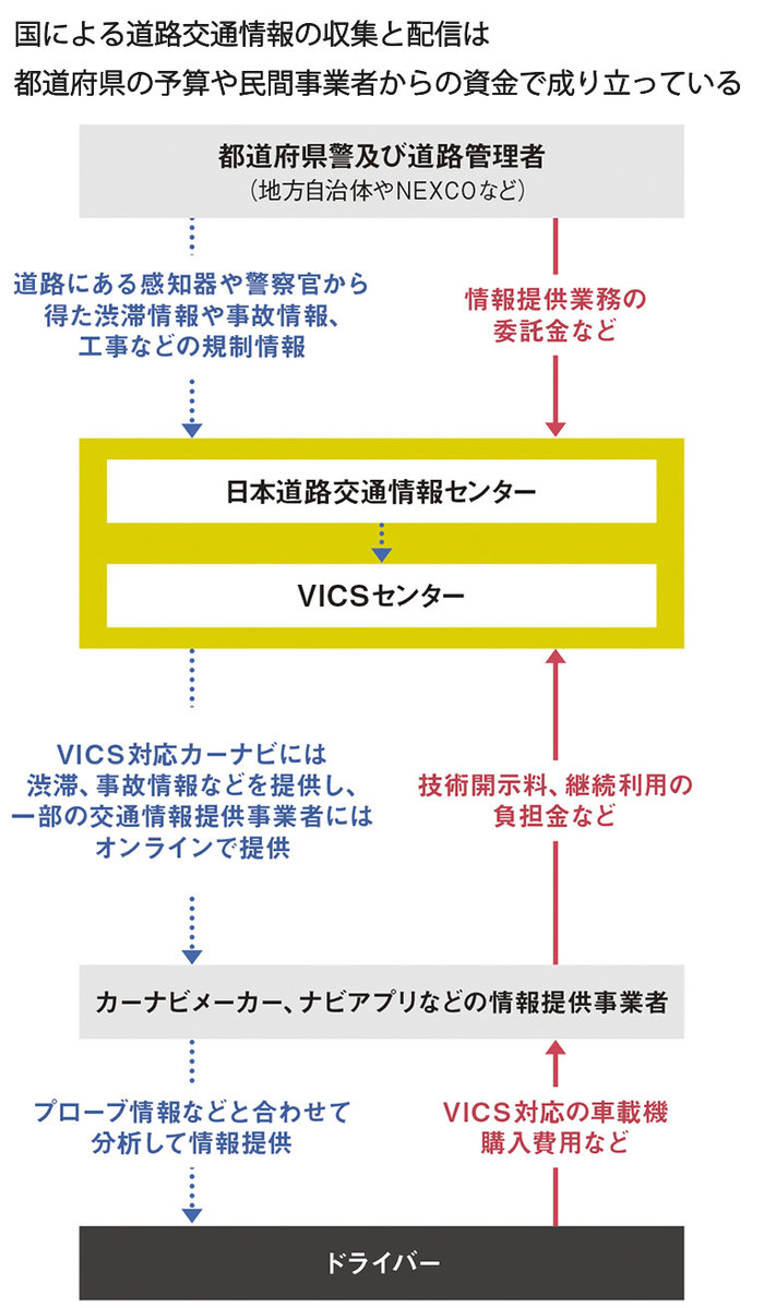 こうした道路交通情報提供の体制を資金面で支えるのは、カーナビを購入したドライバーと道路管理者、そして都道府県警(公安委員会)だ。