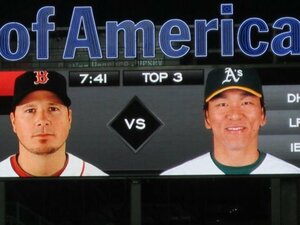 レッドソックスがアスレチックスと対戦した時には松井秀喜選手も出場した。バック スクリーンには投手と松井の対決という形で選手紹介がされていた