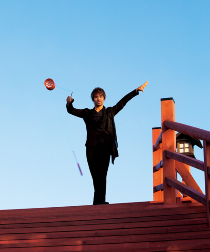 5階建ての建物ほどの高さに投げ上げられたディアボロを、糸1本でキャッチする。うまくキャッチできないと、客席から「あーっ」とため息が出る。それを話術でカバーし、人々の足を繋ぎ止めながら芸を続ける。そして、最後の最後にさりげなく生活がかかった投げ銭のお願い。そのまま立ち去ることも客の自由、いくら投げ入れるかも客の自由。ステージの上にポツンと置かれた帽子は、この道一本で生きるプロの厳しさを物語っているかのようだ。