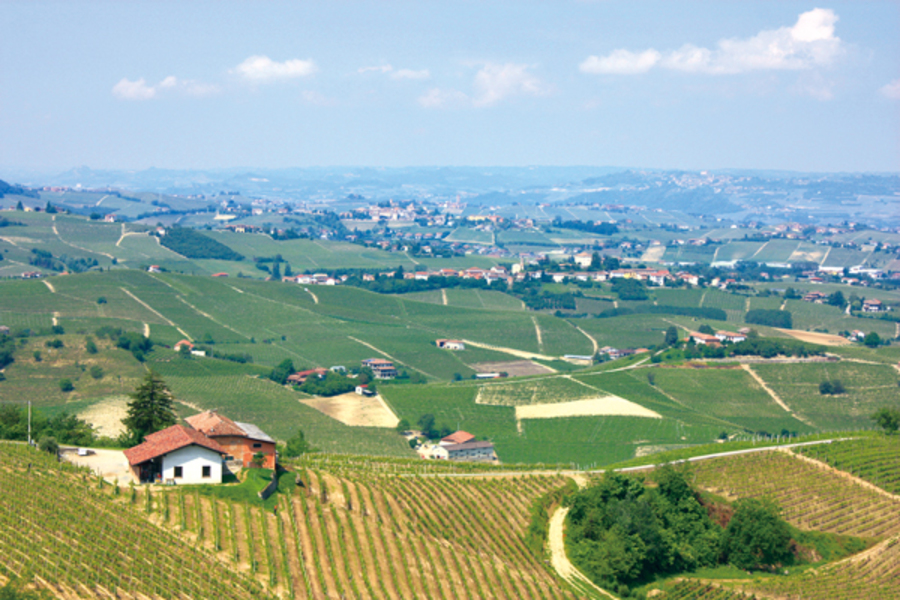 イタリア北西部のピエモンテ州。バローロやバルバレスコといったイタリアを代表するワインの銘醸地である。緩やかな大地のうねりを覆うようにブドウ畑が広がり、レンガ色の古城や教会、農家が点在する景観は、世界遺産にも指定されている。