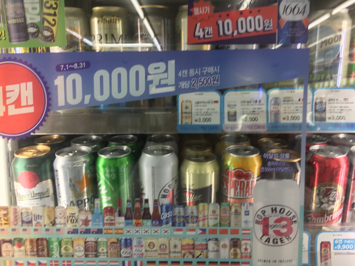 仕組みはこうだ。韓国のコンビニでは各国の多種多様なビールが販売されている。輸入ビールの多くは500ミリリットル缶1本で4000ウォン(約350円)前後の価格が付いているのだが、実際にこんな値段で買う人はいない。どのコンビニでも「4本で1万ウォン(約880円)」というキャンペーンがいつも行われているので、普通の人は4本単位で買っていく。ヱビスビールやサントリー・プレミアムモルツなども4本1万ウォンなので、「日本よりお得」だったのだ。ところが、今回の騒動を受けて各社がキャンペーン対象から日本のビールを外した。今まで「4本1万ウォン」で買えていたのが、「1本4000ウォン」になったということだ。これで売り上げが落ちなければおかしい。