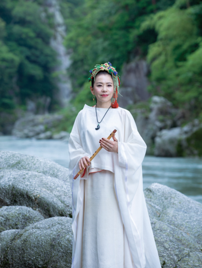 ◉もりた ばいせん:長野県天龍村に生まれる。公務員などを経て2007年、ニューヨークで演奏家デビュー。篠笛(しのぶえ)、能管(のうかん)、龍笛(りゅうてき)、フルートなどさまざまな笛を奏でる。各地での演奏活動のほか、八坂神社、石清水八幡宮、出雲大社などに演奏を奉納。最新アルバム「万葉」を今秋リリース。