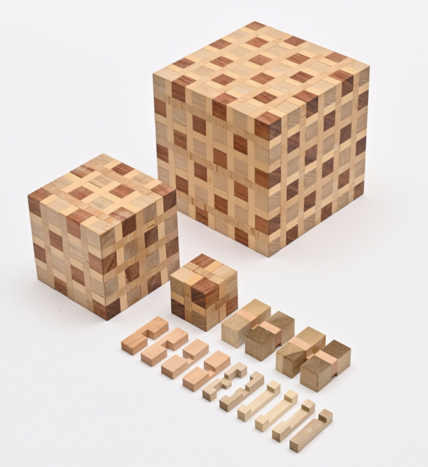 分解された木組作品からは、無垢材の柔らかな風合いとともに、職人の手仕事ならではの美意識と心遣いが感じられるだろう。