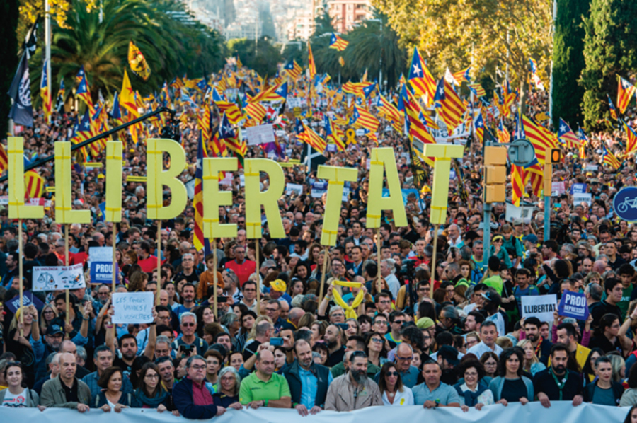 10月27日には、スペイン国旗を掲げた約8万人の独立反対派の市民が、バルセロナ市内で「プロセス(独立運動)はうんざり」と訴えた。国の分断を助長する運動に対抗する動きも増えている。