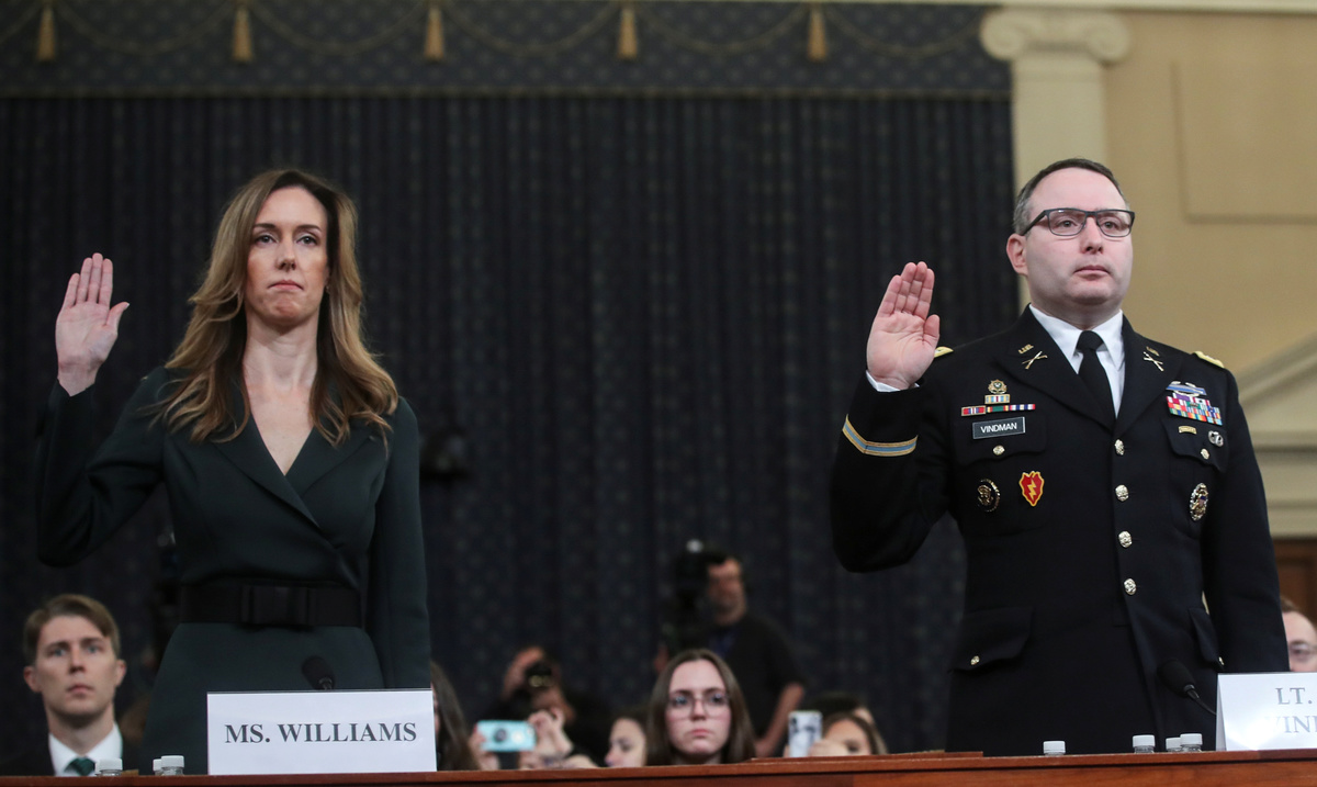 トランプ大統領とウクライナのウォロディミル・ゼレンスキー大統領の電話会談を直に聞いた国家安全保障会議(NSC)のアレクサンダー・ヴィンドマン米陸軍中佐とマイク・ペンス副大統領の外交顧問ジェニファー・ウィリアムズ氏の証言に関心が集まりました。