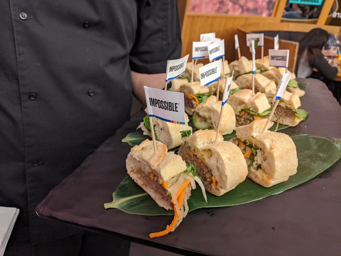 試食の感想だが、非常にポークらしい風味が出ていたことにまず驚かされた。インポッシブル・フーズのビーフバーガーは以前に食べたことがあるが、食感、味ともにやはり偽物、という印象が強かった。不味いわけではないが、肉というより豆料理の風味がした。