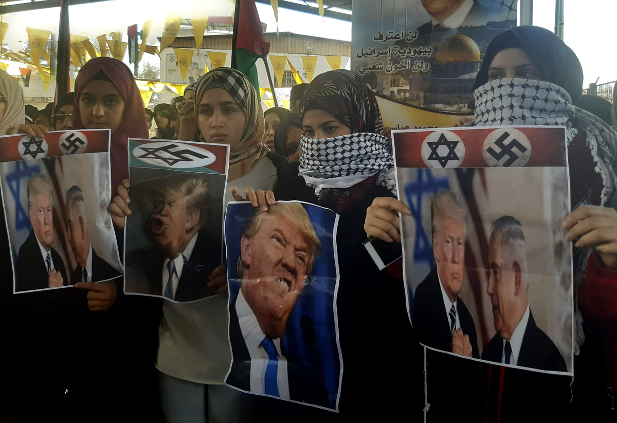 トランプ米大統領はホワイトハウスで1月28日、イスラエルとパレスチナの中東和平案を発表した。イスラエル占領の現状をほぼ固定化した内容で、圧倒的にイスラエル寄りの提案だ。パレスチナ側は直ちに拒否した。弾劾裁判中の大統領と汚職容疑で起訴されたイスラエルのネタニヤフ首相。背景には中東和平を選挙に利用し、窮地から脱しようとする2人の思惑が透けて見える。