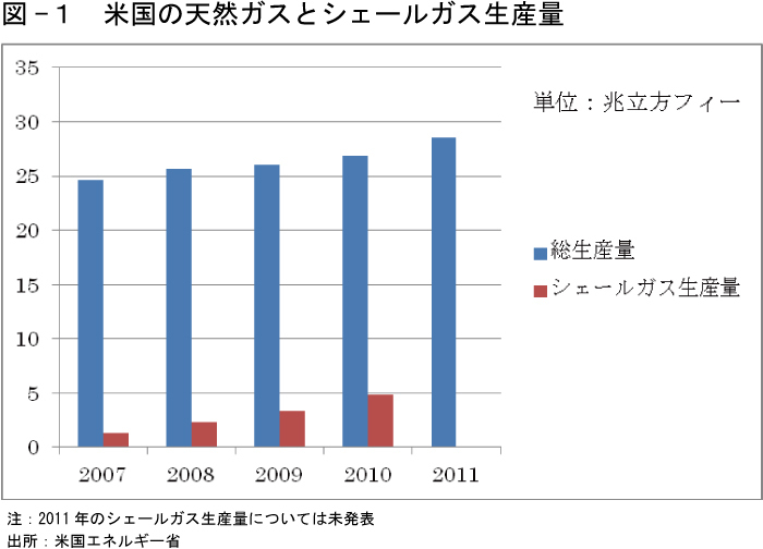 水平掘削と水圧破砕法の組み合わせにより、ここ数年で大きく増加したシェールガスの生産は全米のガス市場を変えてしまった。米国の天然ガス、シェールガスの生産量は図-1の通りだ。このシェールガスの生産増により、米国の天然ガス輸入量は減少する一方、輸出量は増加している。