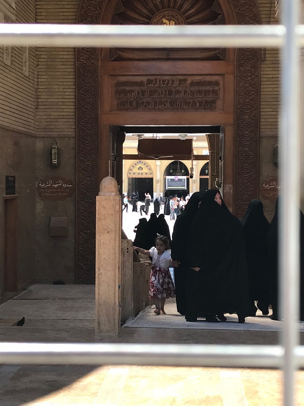 モスクで人々がお祈りしたり休憩する中に混じっていると、目の前でお祈りをしていた女性が話しかけてきた。パキスタン出身とのこと。ラフィッド曰く、おそらくパキスタンからイランまで飛行機で移動し、イランからイラクまで車でやってきたのだろうとのこと。