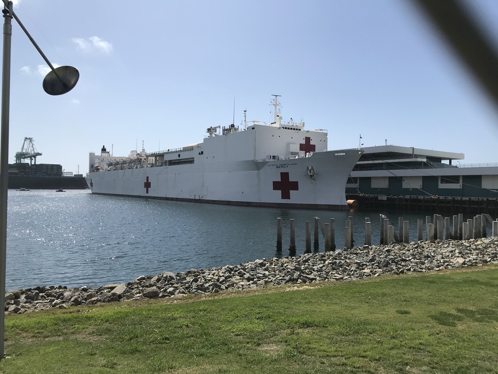 感染爆発と医療崩壊に備え、広大な面積を誇るロサンゼルスコンベンションセンターは現在州兵の手によって臨時の医療施設への転換が進められている。これは軽症者などを隔離するための施設で、人工呼吸器が必要となるような重症者のために病院の病床を確保するのが目的だ。ロサンゼルス港にはウィルス感染者以外の重病者を搬入するための病院船も着岸しているが、まだ実際には稼働していない。