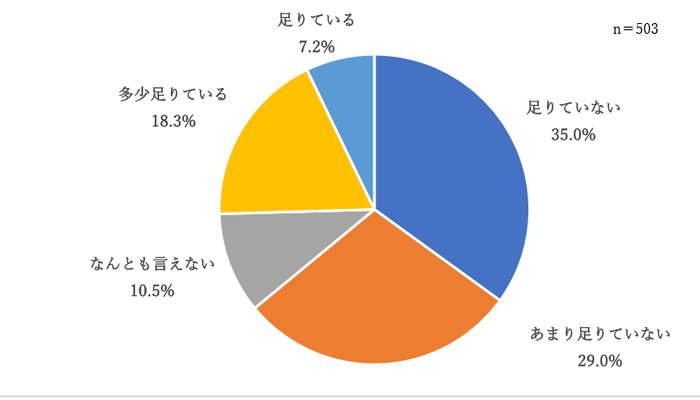 新型コロナ禍では、サービス提供の必需品である「マスク」「消毒薬」などといった衛生用品が、各介護事業所では入手困難となり、大きな影響を及ぼした。既述の調査結果において「あなたの介護事業所で、1 ケ月前と比べて衛生用品(マスク、消毒液など)は足りていますか?」という問に対して、「足りていない」35%、「あまり足りていない」29%となっており、約6 割弱の回答者が「不足」しているといった認識であった。