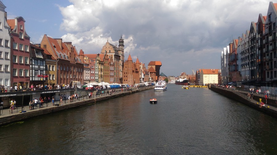 8月15日、グダンスク中央駅に列車出発時刻の30分前に到着。目指すプラットフォームまでは改修工事中のためエレベーター、エスカレーターがない。合計30キロとなる荷物を満載した自転車を担いで階段を昇る。屈強のポーランド人の若者の手を借りて長い階段を上がった。