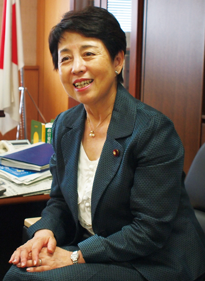 インタビューを受ける藤田一枝厚労政務官(撮影:編集部)