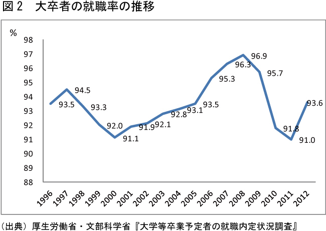(図2)大卒者の就職率の推移拡大画像表示