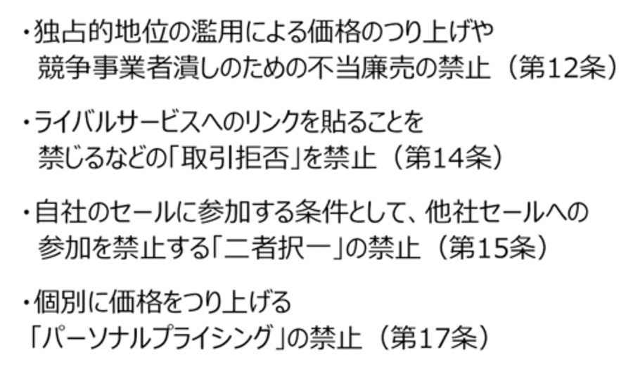 「プラットフォーム企業規制は、欧州を手始めに、米日へ広がり世界的な潮流となっている。独占を規制しなければ、中小事業者やメディア、消費者の利益が損なわれるという懸念がある」
